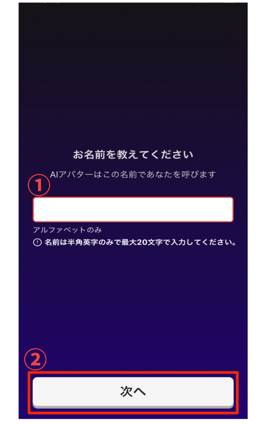 ① お好きなお名前をアルファベットで入力してください。