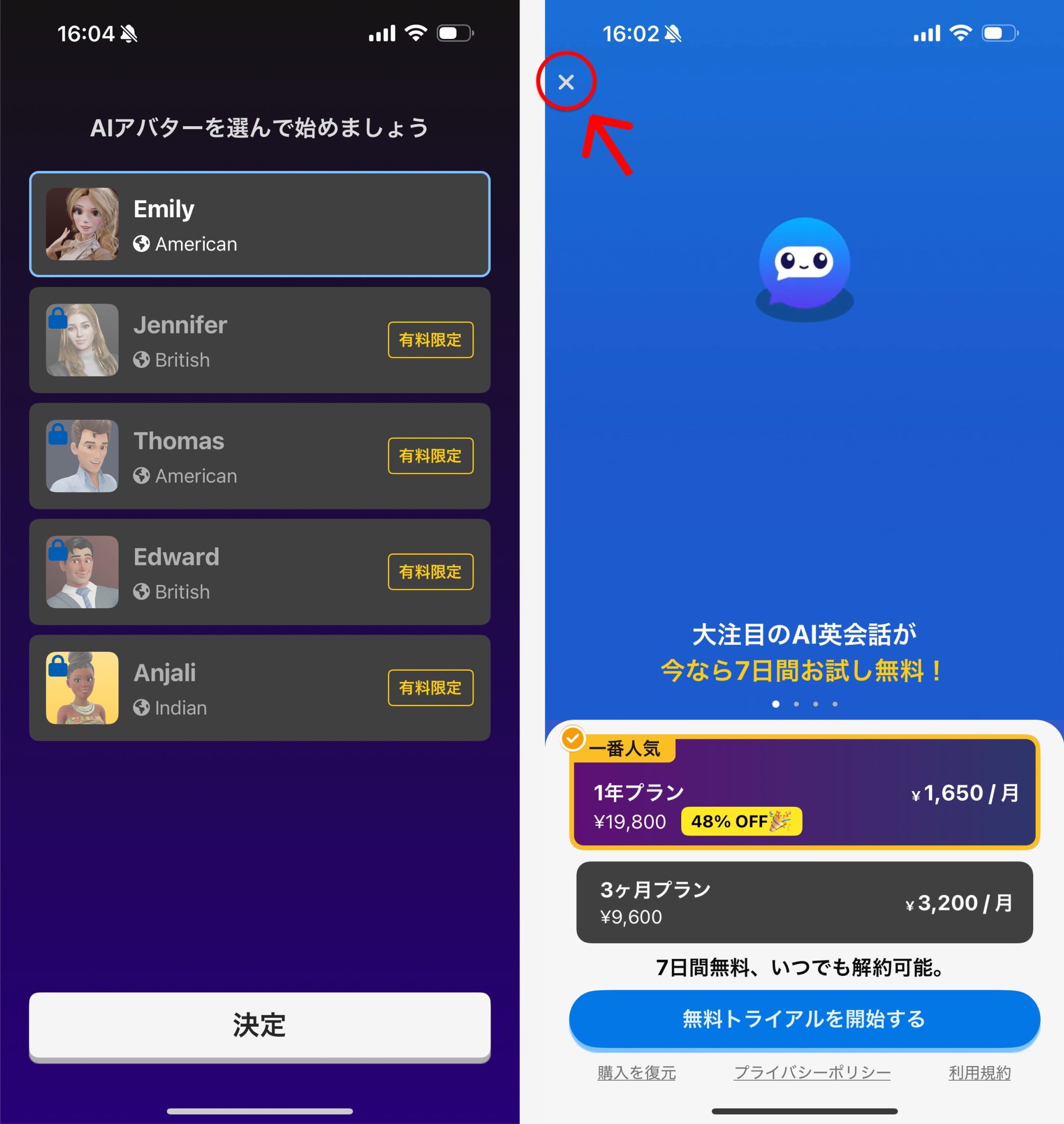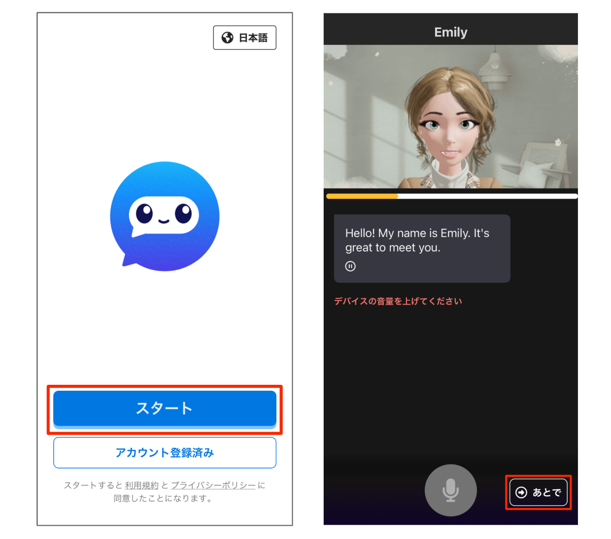 「Emily(無料アバター)」を選択し、[決定]をタップしてください。
