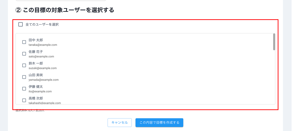 この目標を割り当てるユーザーを選択して下さい。