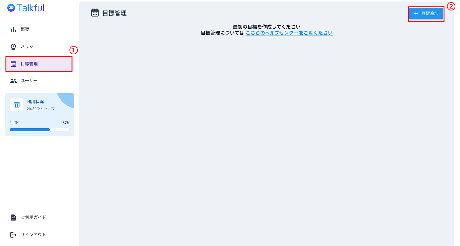 ① ダッシュボードにサインイン後、左メニューから[目標管理] を選択します。
